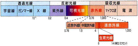 遠赤外線はあらゆる発熱体から放射されていますが、この中でも波長がミクロンのものが生物共通の吸収波長で、「生育光線」と呼ばれています。